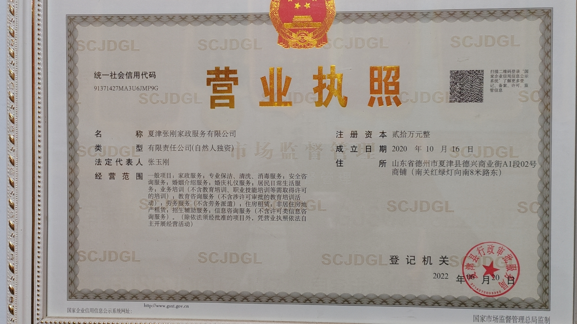 山东省夏津县张刚家政服务有限公司是经夏津县工商部门(行政审批服务局)批准成立的一家以提供家政服务为主的公司。个体店成立于2012年6月,二零二零年十月十六日由个体店成立服务有限公司,统一社会信用代码:91371427MA3U6JMP9G。现在已经成为夏津县家政的优秀品牌家政公司。公司实行标准化管理,几年来,公司已经为超过1000多人解决了就业问题。公司实力强大、服务有保障。专业提供:家政服务员岗前培训、 月子护理月子中心、婴幼儿护理、家教、养老护理员、居家保洁、钟点清洁、婚姻介绍、学历提升等服务。